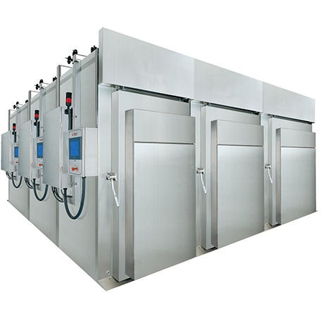 ● Modularized chamber construction is easy to transport and install. Single row or Double rows; one door or tow doors, and optional mutual interlocking gear for cooked/uncooked areas.